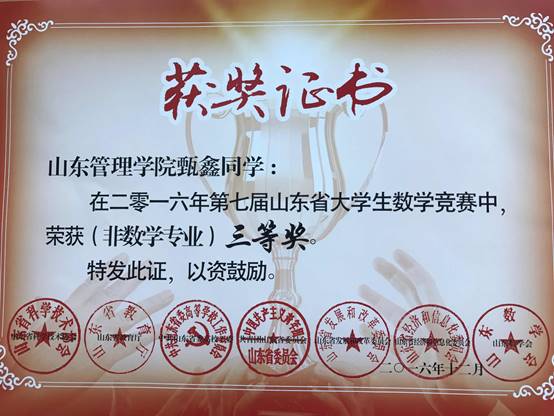 近日,第八届全国大学生数学竞赛暨第七届山东省大学生数学竞赛成绩公布,信息工程学院组织学生首次参加这项赛事,获得了山东赛区三等奖的成绩。