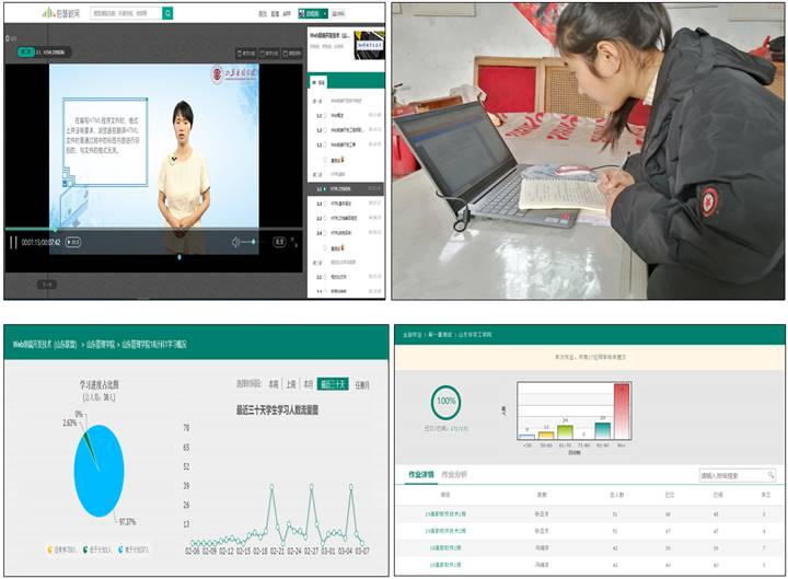 课程得到了省内外各选课高校师生的一致好评。山东建筑大学计算机科学与技术学院的杜老师在本学期的《Web技术应用》课程中选择该课程作为混合式教学平台,对在疫情期间的教学质量保障起到了重要作用。杜老师认为Web前端在线课程备受欢迎,首先是主讲教师授课认真,视频内容丰富,使得课程在平台上具有较强的吸引力;再是课程设计合理、繁简得当,实用性强;三是选择了国内认可度和使用率最高的储久良老师主编的《Web前端开发技术》作为课程教材,使得课程具有较强的代表性和通用性。
