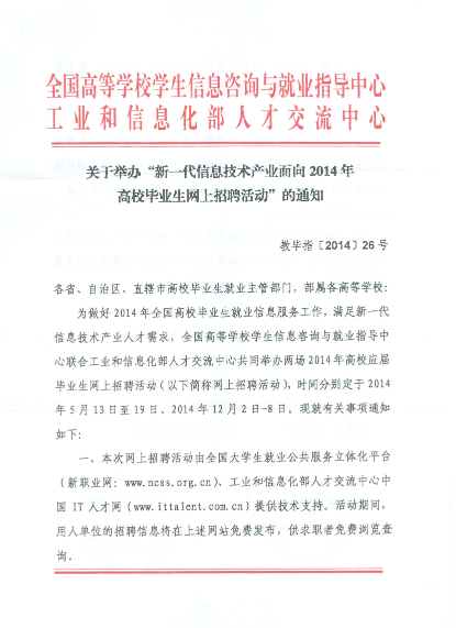关于举办“新一代信息技术产业面向2014年高校毕业生网上招聘活动”的通知