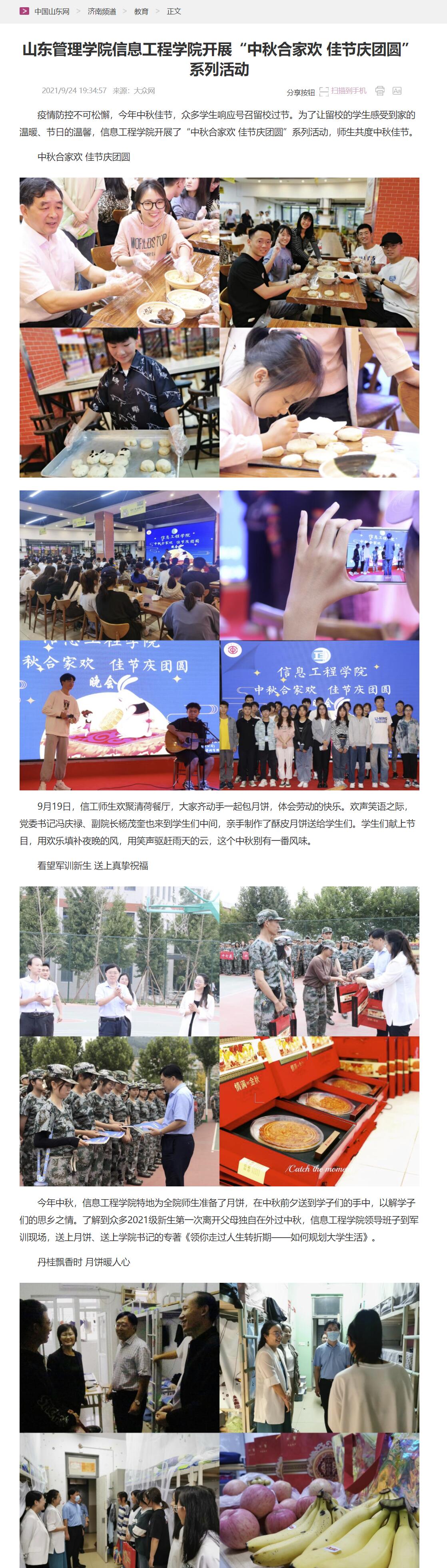 【中国山东网】山东管理学院信息工程学院开展“中秋合家欢 佳节庆团圆”系列活动