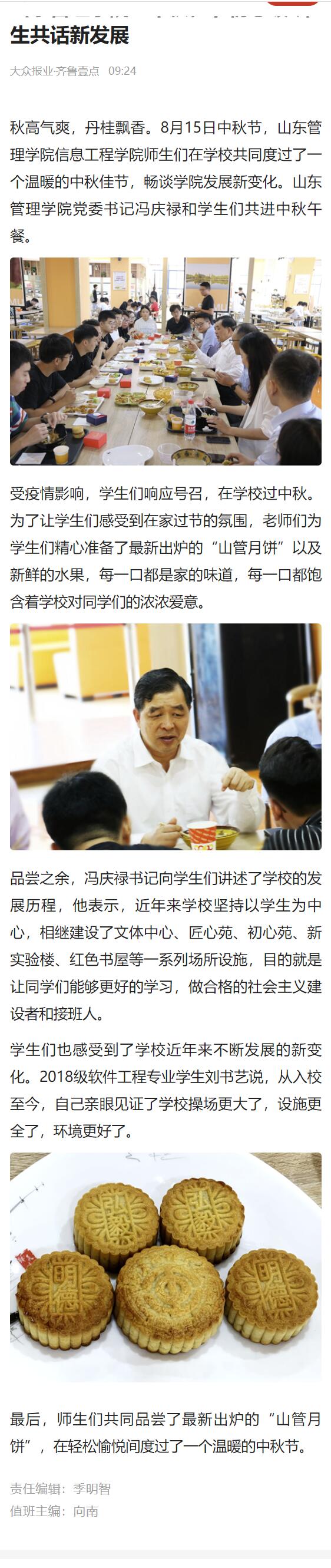 【壹点】山东管理学院:中秋佳节情意暖 师生共话新发展