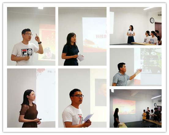 信息工程学院首先在各年级各班级自行组织召开了主题班会,随后王琳、张慧、白冰、王小婷、李超、张莹莹、郭振亚分别以《以青春之名》、《七十华载》、《雷锋精神》、《科技发展、与国同梦》、《厉害了,我的国》、《建国70周年》、《国防军事》为题,涉及五四精神、雷锋精神等,结合科技、军事等不同视角讲述了祖国发展七十年的壮丽历史,主题班会中还包含了朗诵、知识问答等环节,精彩纷呈。