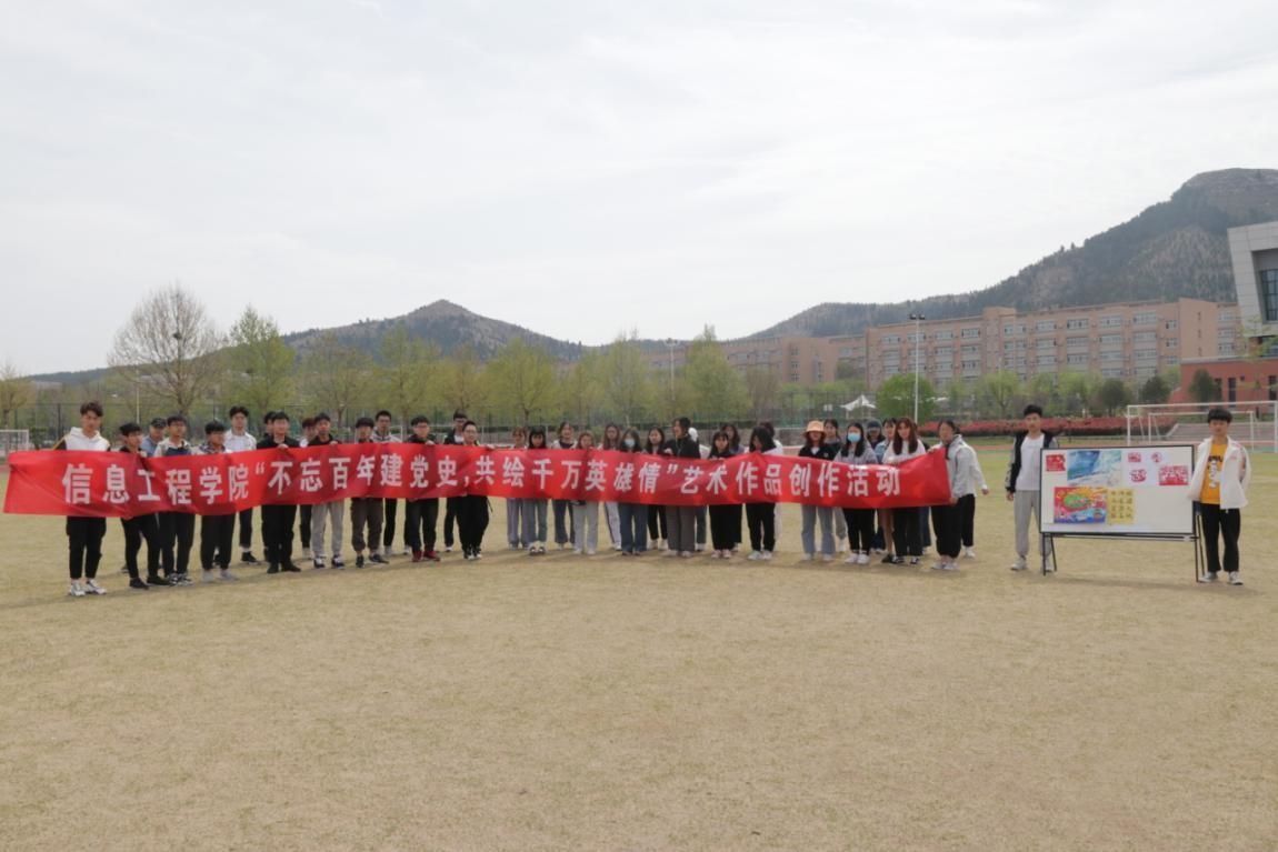 2021年4月11日上午10:00,信息工程学院团总支学生会组织部举办了“不忘百年建党史,共绘千万英雄情”艺术作品创作活动。本次活动力争创新,力争突破,用艺术去展现国家的发展、国家的伟大,用创作去描绘党的奋斗历史、党的光辉业绩。活动共有45名同学参加,同学们在操场围坐,分别分享了自己作品的创作理念、创作时的心情以及作品背后那铭记于心的故事。使同学们认识到,作为新时代的新青年,不仅要将个人理想与中华民族伟大复兴的中国梦相结合,更要在新时代特色社会主义的建设中,攻坚克难,砥砺前行!