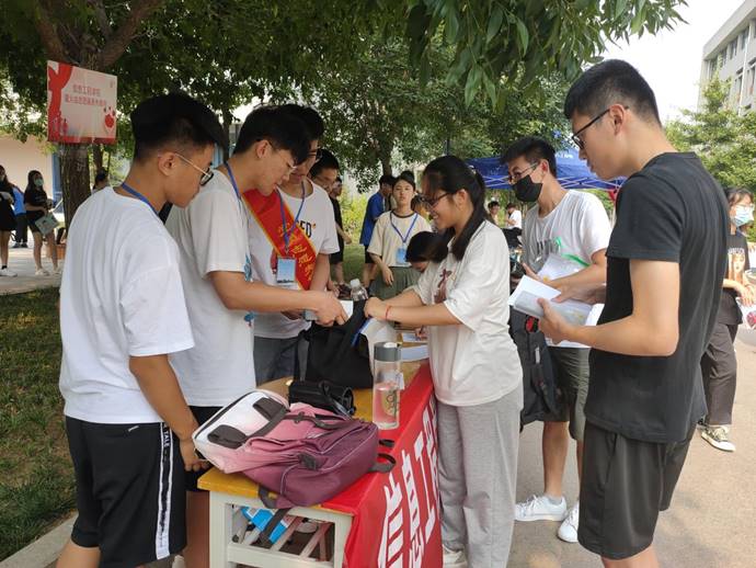 信息工程学院志愿服务队分为党员先锋志愿服务队和萤火虫志愿服务队,分别在博学楼和明志楼的考点入口处设置了志愿服务点,帮助同学们存放书包、手机等。每一个存放物品都会被记录到存放物品表中,并且每个物品都会被志愿者贴上专属的标签,确保不会出现错领、冒领的现象。