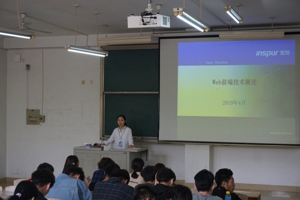 4月18日下午两点,浪潮优派教育集团杜其凤老师在1#A201为18级软件工程专业全体学生做了题为《Web前端技术概述》的专业知识讲座。