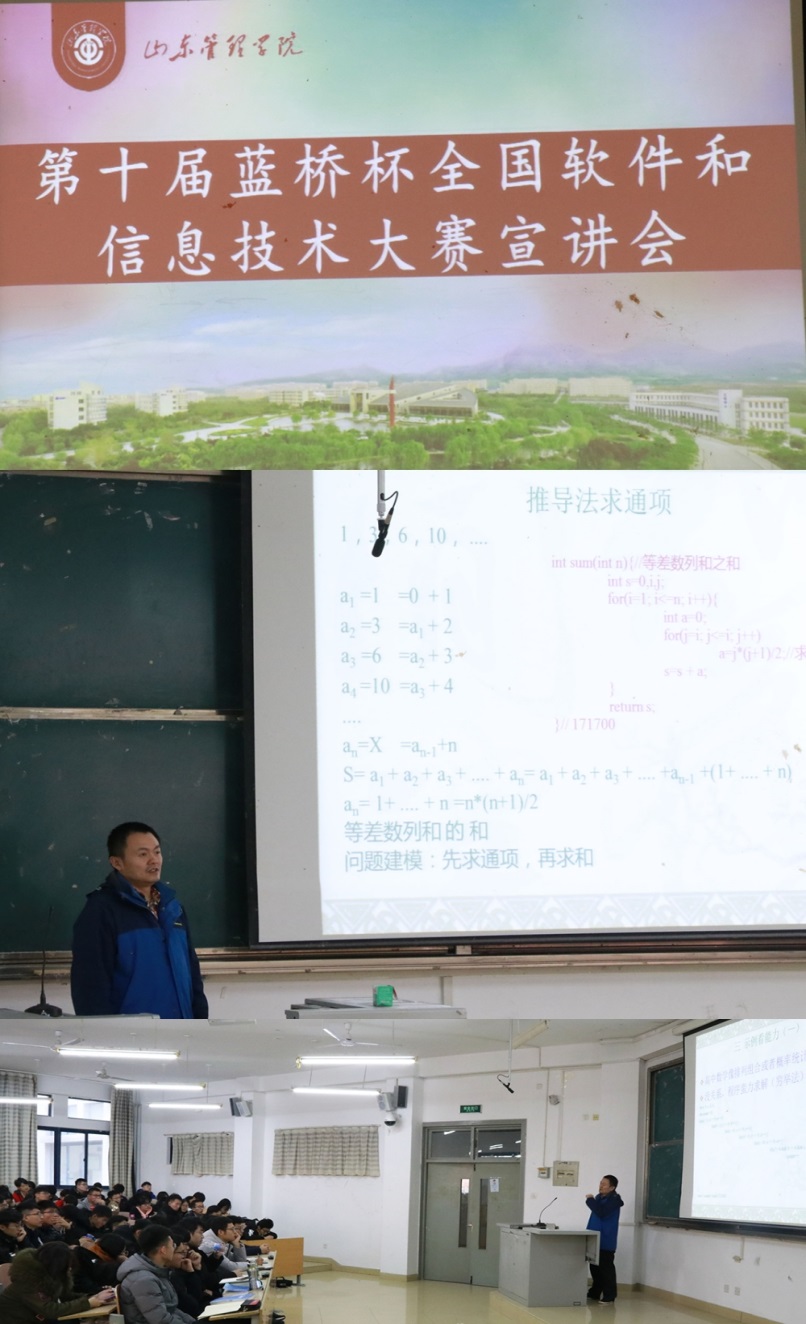 12月4日,信息工程学院在1#B102召开第十届蓝桥杯全国软件和信息技术大赛宣讲会,特邀山东师范大学信息科学与工程学院具有丰富大赛经验的李焱老师为同学们作了精彩的报告,软件工程、计算机科学与技术专业等近200名同学参加。