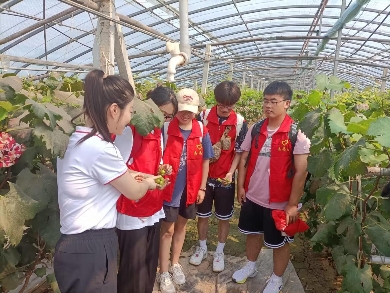 聚焦成果,精准挖掘增收潜力。“我和我的家乡”乡村振兴实践团队深入走访当地葡萄产业大棚,详细了解葡萄种植技术以及葡萄种植在发展产业、带动群众致富方面的经验及难点,针对反馈的销售路径较窄等问题,团队成员通过开展电商直播等方式,帮助群众进一步拓宽销售渠道。