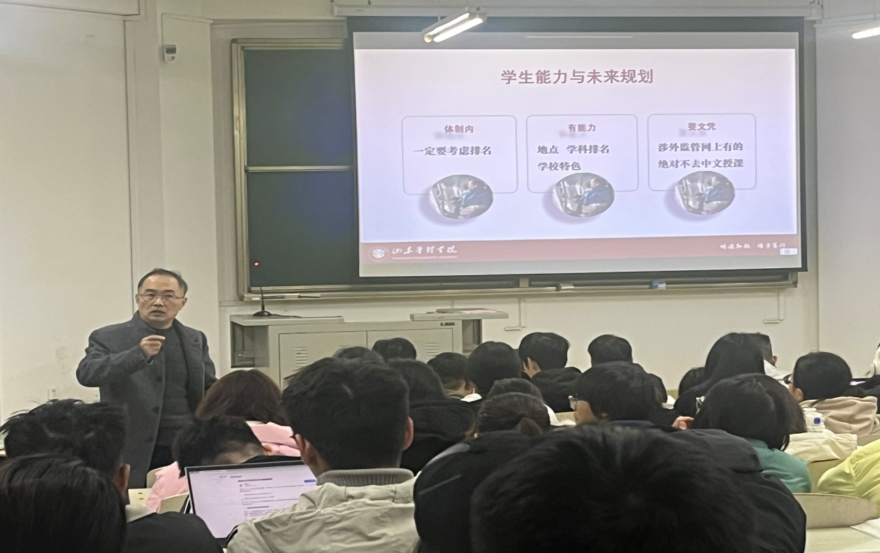 徐健剖析了出国留学的意义和能够带来的收获,并介绍了选择留学国家和学校应考量的因素,由浅入深地讲解了在各个国家留学的要点、入学条件、费用以及申请流程等内容,同时为各位信工学子讲解了学校目前为学生们提供的出国(境)留学服务、交换生项目的优势和特点。他强调,“若要出国深造,则需注重语言的学习和课程的选择,希望同学们尽早规划,全面提升综合素质,为毕业后走向社会具备更多选择,奠定良好的基础”。