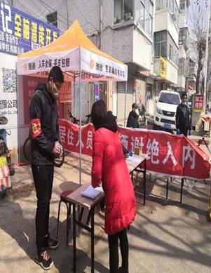 孙瑜璞,信息工程学院17级软件工程专业同学,积极响应当地街道团工委号召,在当地疫情社区防控指挥部的统筹安排下,孙瑜璞同学被分派往当地小区门口进行临时出入管制,核查出入居民的临时通行证件,对其体温以及身体状况进行检查记录并登记其个人身份、联系电话和住宅地址等信息。依照政府政策,严格控制人员出入,和工作人员一起扩大宣传疫情防控知识,防制疫情进一步发展。