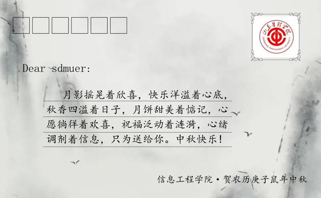 明月升,信工情。9月30日,值国庆、中秋双节来临之际,山东管理学院信息工程学院举办了中秋送祝福活动,为信工学院每一位学生送上了中秋祝福大礼包。
