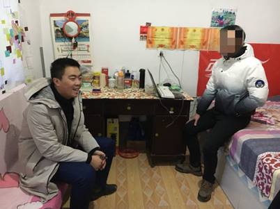郭振亚老师在经过三个多小时的车程后,到达小王同学家,在与其家人的交流中了解到,该同学的父亲患病无法做重活,家中只有母亲一人工作。但即使如此,小王同学也始终没有耽误学业,学习成绩一直排名专业前列。不仅如此,小王同学还表示:自己将会在新的一年中不辜负家长和老师的期待,继续拼搏,得一个令自己和大家都满意的成绩。