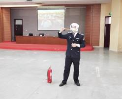 王甲瑞在讲座中提出了消防安全应具备的四个能力:检查清除火灾隐患能力、扑救初起火灾能力、组织疏散逃生能力和消防宣传教育能力,并强调掌握四个能力对预防火灾的发生至关重要。其次,王甲瑞结合近些年来火灾安全事故的视频案例,向师生们详细地分析了不同火因、不同火情的正确的处理方法,并普及了灭火器的类型和正确使用灭火器的方式方法,并用现场示范的教学方式介绍了如何快速有效地佩戴防烟雾面罩及逃生注意事项。