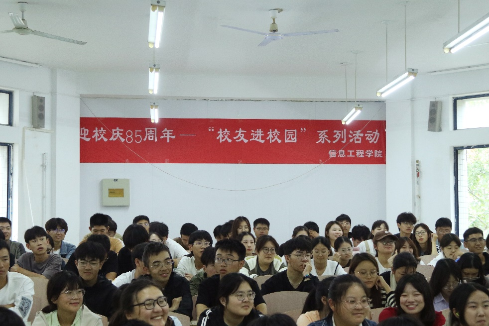9月27日,信息工程学院于博学楼B201举办迎校庆85周年“校友进校园”系列活动,特邀2016级优秀毕业生张双兴回到母校交流学习。各年级学生代表共座聆听,拓宽就业视野,提升专业素养,为建校85周年、升本十周年庆典预热。