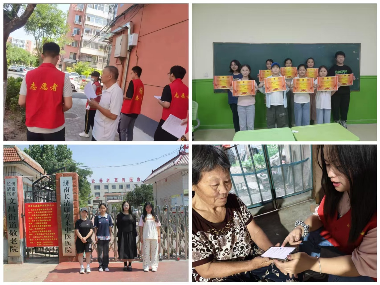 “青衿助老”团队前往济南市历城区中海·天钻社区,精准服务23位独居老人,形成《需求清单》,提供定期陪伴、智能手机教学、代购、陪医及应急响应服务,探索大学生参与社区养老路径;“云边夕阳”团队前往济南市长清区文昌街道敬老院,开展环境清扫、情感陪伴与倾听,活动获长清区电视台报道;“向阳逐梦”实践团在菏泽市成武县南鲁集镇南陈庄村和济宁市邹城市石墙镇宋庄村,为两地老人提供亲情陪伴、安全宣讲、情绪疏导等;“寂语者”志愿服务队奔赴青岛市即墨区西元庄社区,作为助教参与学生托管,提供课业辅导、游戏互动、心理关怀等服务,助力社区学生暑期成长。