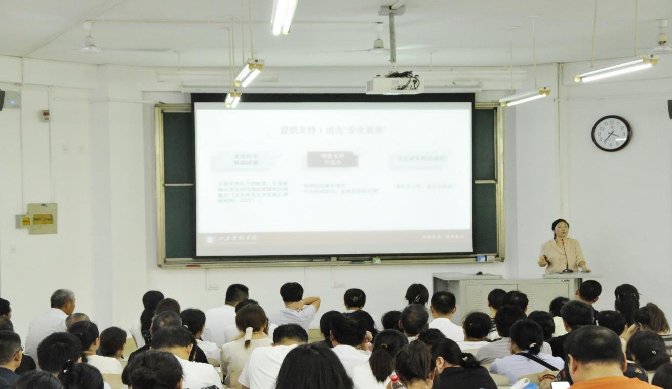 山东管理学院学生工作部副部长朱敏题为《家校同心 共赴未来——如何做好大学生的家长》的分享引发了在场家长的强烈共鸣。她指出数字时代,大学生面临新的困扰与机遇。“家长需要学会在‘放手’与‘牵手’之间找到平衡——给予孩子足够的独立空间,同时在关键节点提供适时支持。”