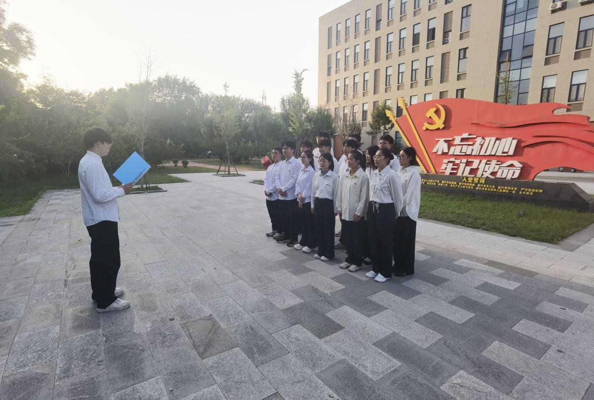 在庄严的氛围中,全体党员面向党旗,高举右拳,重温入党誓词。铿锵有力的誓言,彰显了学生党员坚定的理想信念和责任担当。