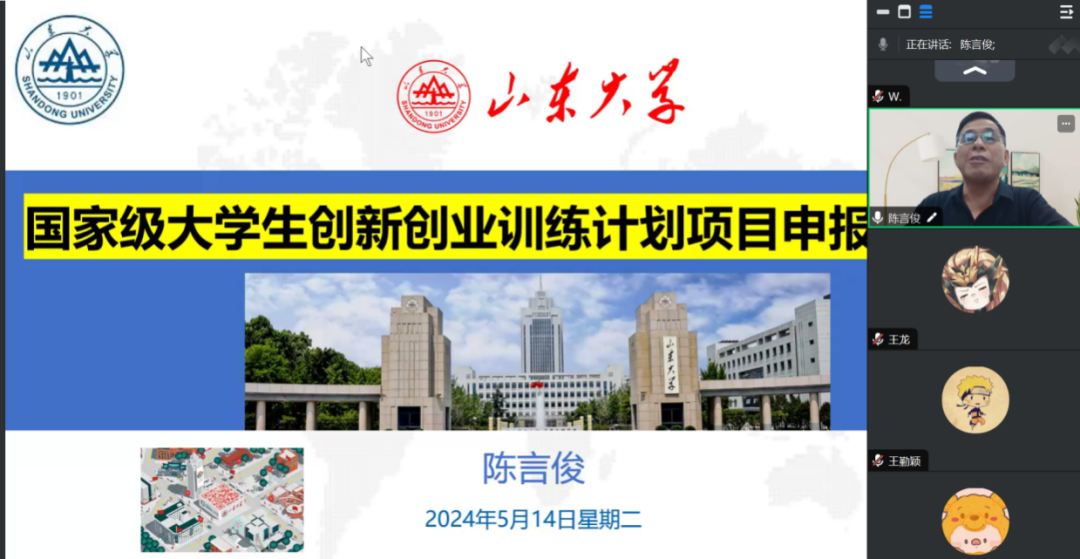 为深化落实立德树人根本任务,培养大学生创新创业精神和社会实践能力,提高项目申报和研究质量,5月14日下午,特邀山东大学陈言俊教授进行国家级大学生创新创业训练计划项目申报指导培训。